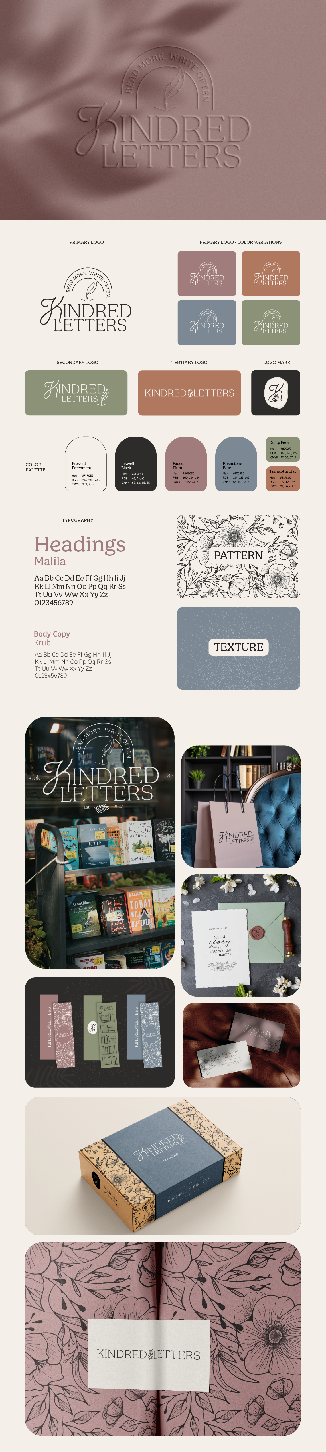 The visual identity should feel soft, nostalgic, and inviting, using muted, natural tones and botanical illustration elements that extend into packaging and a monthly book box subscription. Brand voice is thoughtful and soulful, like a handwritten note tucked inside a well-loved novel.